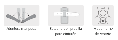 – Funciones de pinza de punta, mordaza curva, cizalla para corte, desarmador plano, desarmador de cruz, sierra, navaja, navaja dentada, destapador, punzón, lima y regla