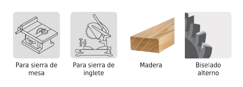 – ATB (Alternate-Top Bevel) Biselado alterno: La sierra alterna un diente hacia la derecha y otro a la izquierda