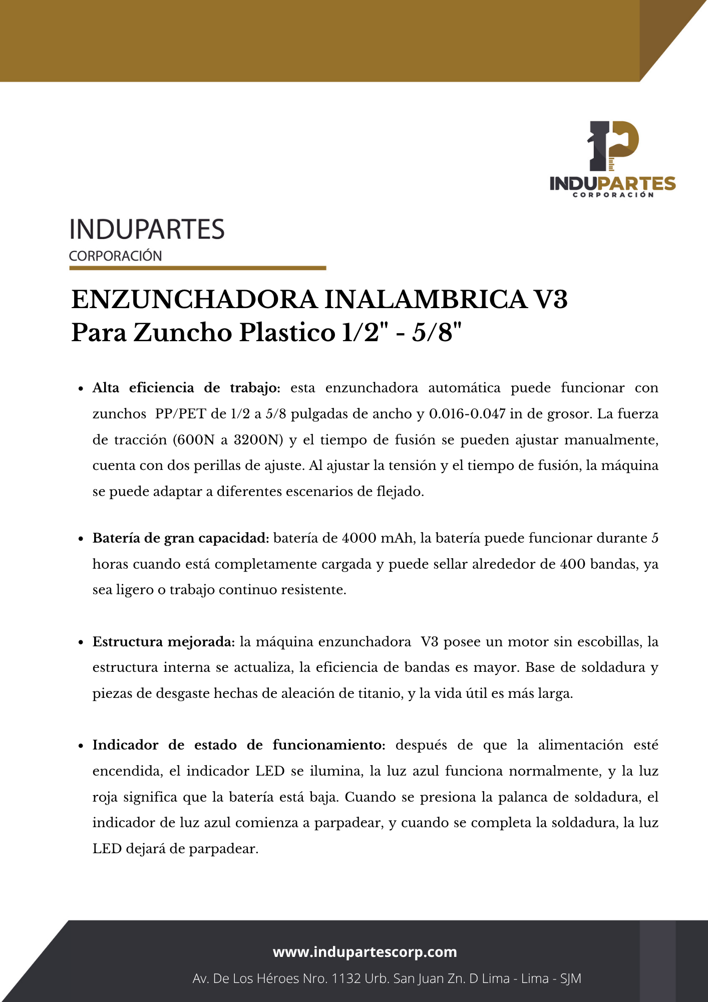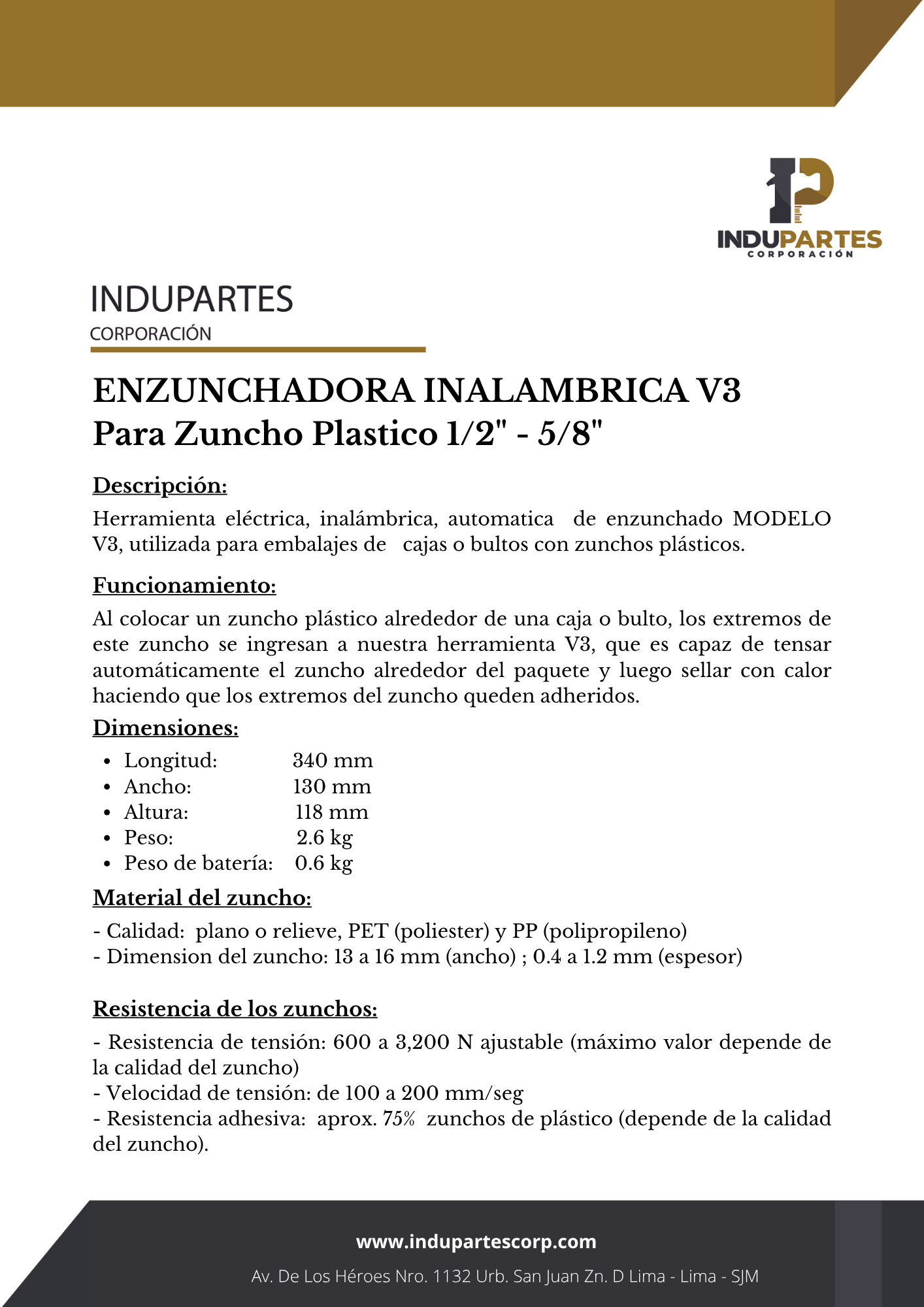 – Enzunchadora Inalambrica V3 Para Zuncho Plastico ( PET/PP) 1/2"- 5/8"