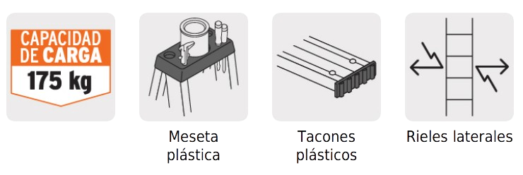 – Doble refuerzo en peldaños inferiores para mayor resistencia