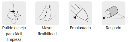 – Hoja desvanecida hacia el centro que proporciona mayor flexibilidad, fabricada en acero inoxidable para máxima resistencia a la corrosión