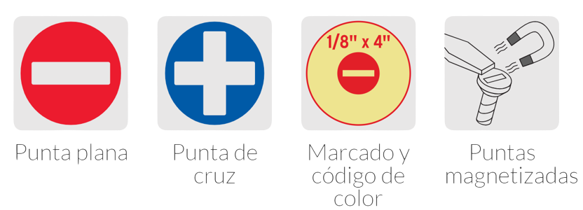 - Desarmadores con puntas de acero al cromo vanadio 2X más resistentes al desgaste que las de acero al carbono