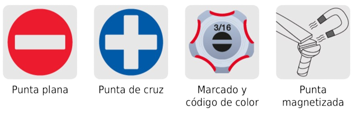 – Marcado y código de color para fácil identificación de medida y punta