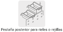- Pestaña posterior para rieles o rejillas