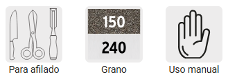 – Grano 150 ideal para afilar, remover imperfecciones y grano 240 para asentar